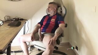 fellow plays with his jism-pump and loves it utterly